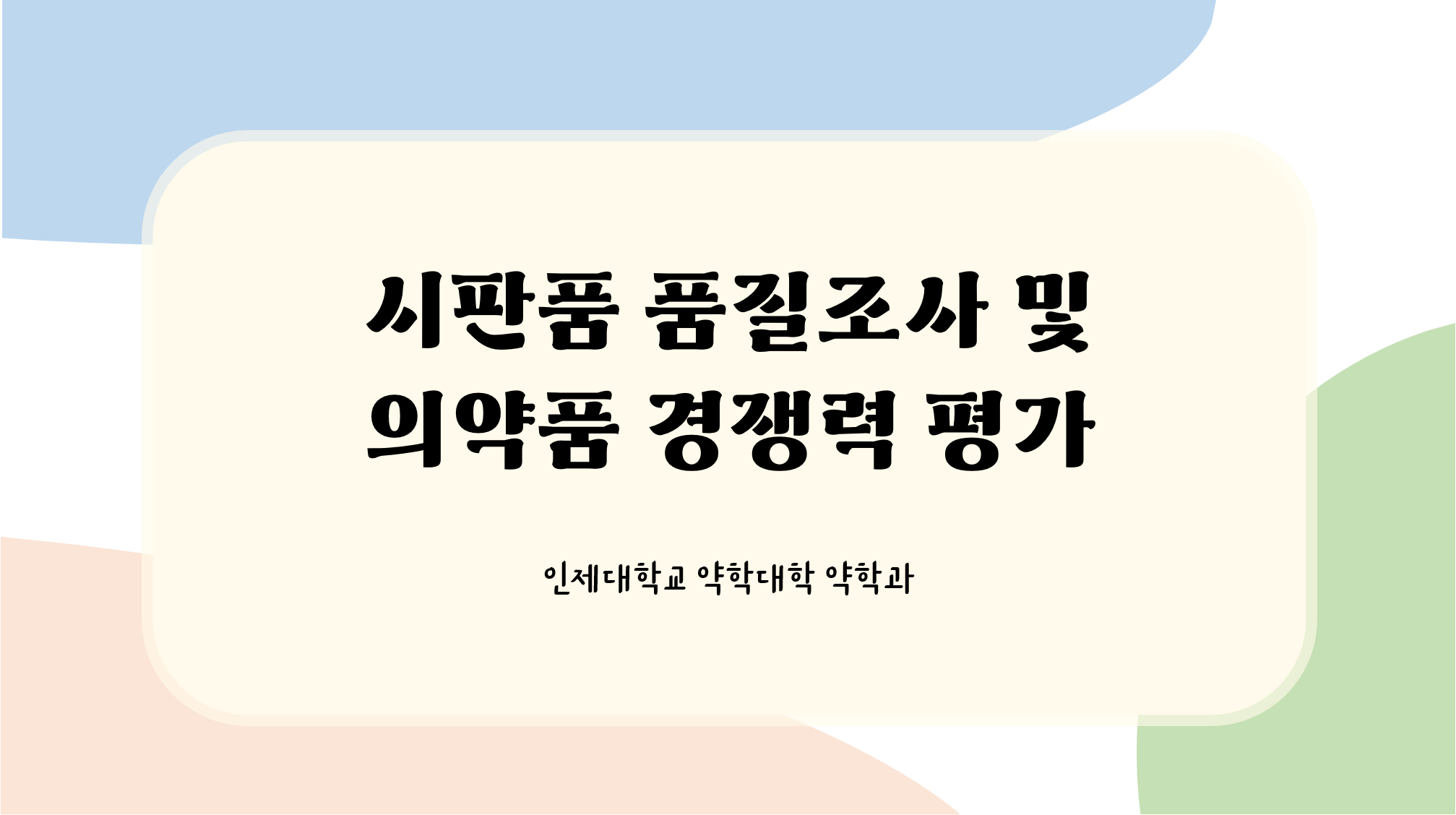 약학 진로 지도를 위한 첨단산업/연구 약사 역량 강화 프로그램 「시판품 품질조사 및 의약품 경쟁력 평가」