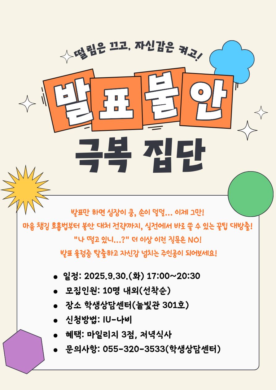 [2025-2학기] 단기 1차_집단상담_ 발표불안 극복 프로그램_ ‘떨림은 끄고, 자신감은 켜고’