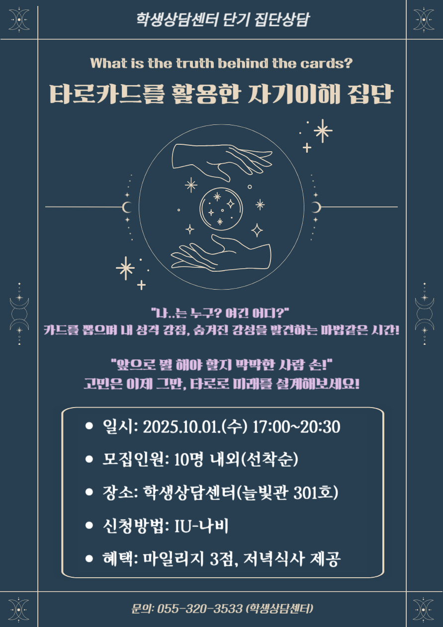 [2025-2학기] 단기1차_타로카드를 활용한 자기이해 집단상담_'내 인생 어쩔 타로 '