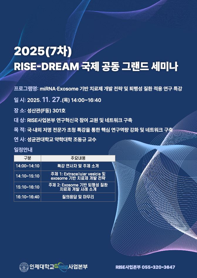 2025학년도 2학기 miRNA·Exosome 기반 치료제 개발 전략 및 퇴행성 질환 적용 연구 특강