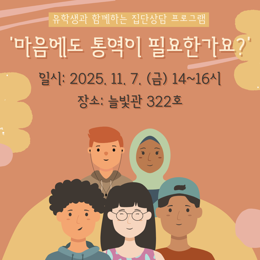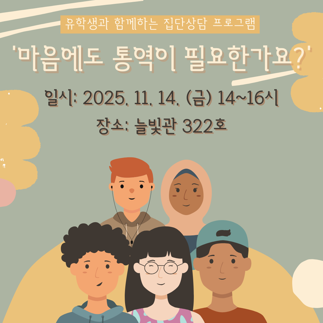 [학생상담센터/국제교류처] 유학생과 함께하는 집단상담 프로그램 '마음도 통역이 필요한가요?' - 11월 14일 (금) 14-16시