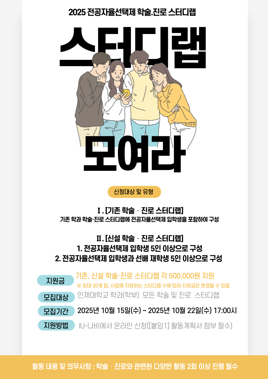 [단과대학통합행정실] 2025-2학기 전공자율선택제 학술·진로 스터디랩