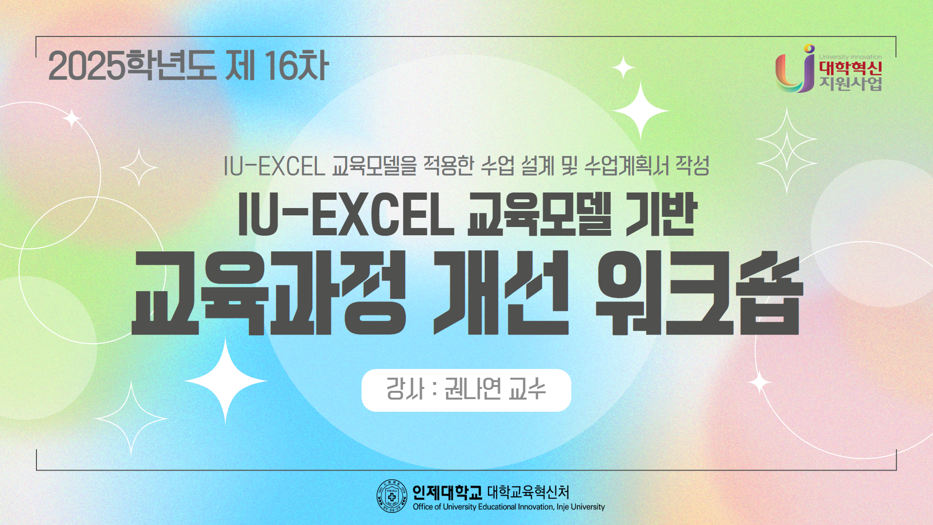 2025학년도 16차 IU-EXCEL 기반 교육과정 개선 워크숍 - IU-EXCEL 교육모델을 적용한 수업 설계 및 수업계획서 작성